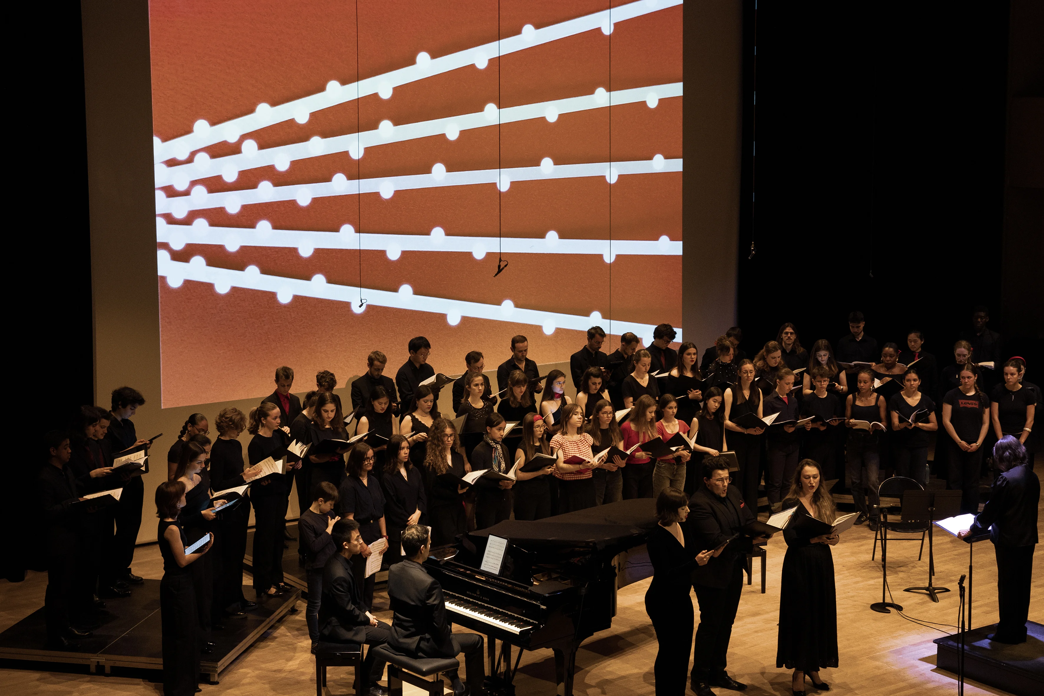 Enrichir l'expérience du spectacle vivant à l'aide des moyens numériques. Proposer une interprétation visuelle de l'oratorio qui fonctionne en harmonie avec la performance scénique